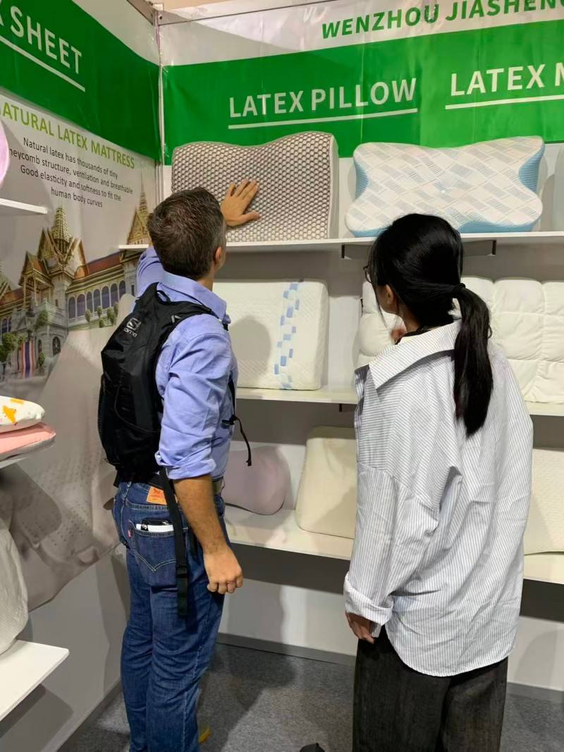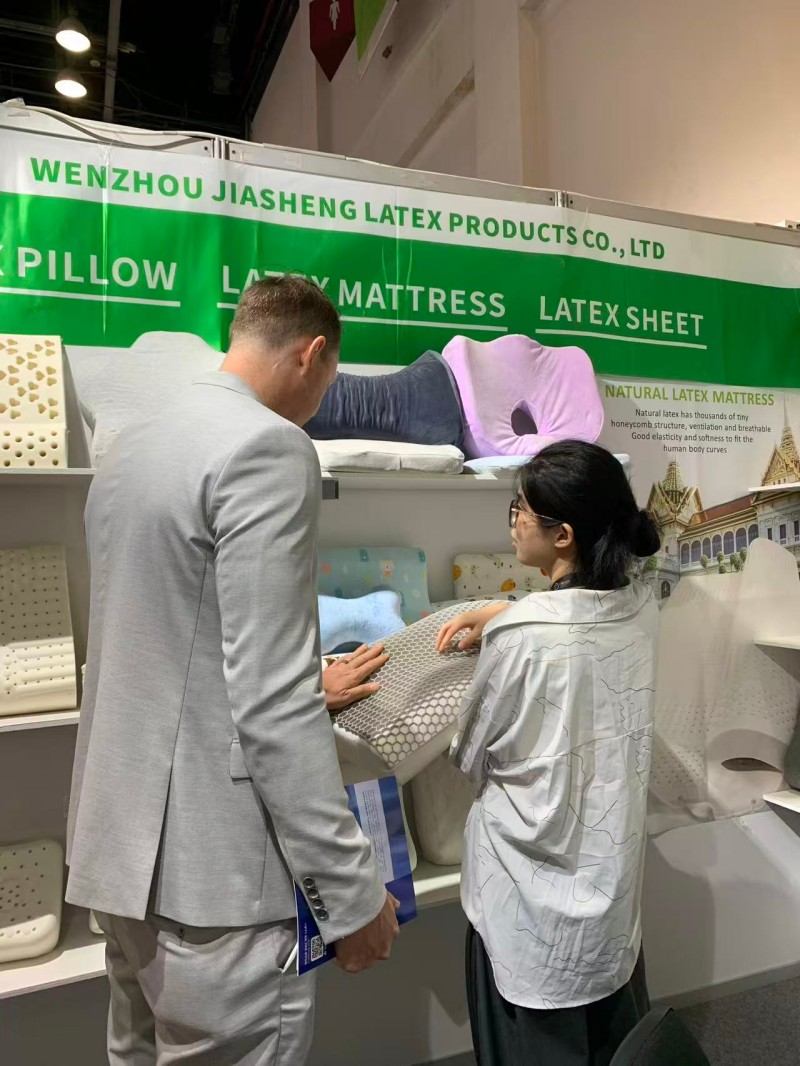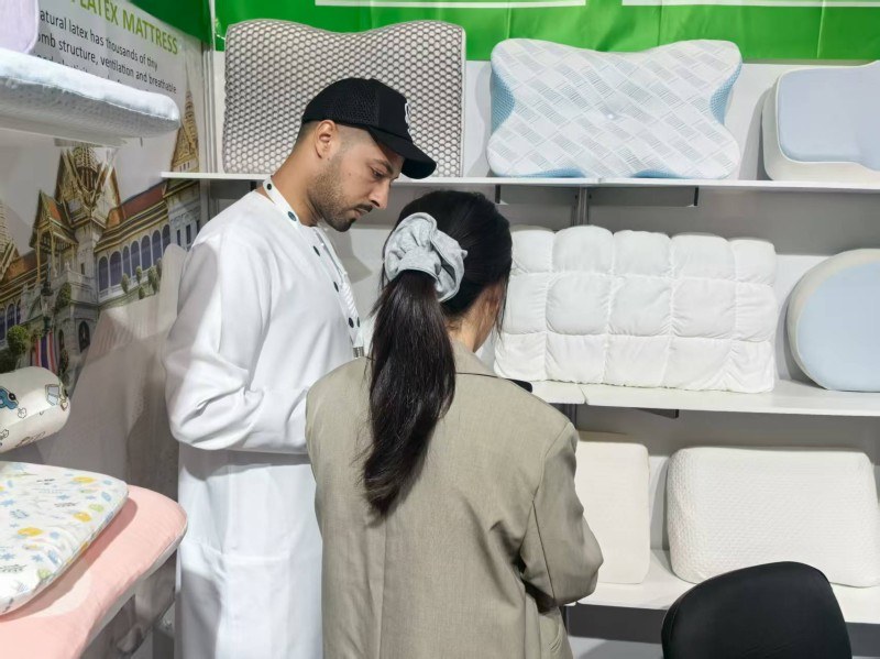 На выставке сна в Дубае мы имеем честь показать наши подушки для сна посетителям со всего мира. Мы стремимся представить две самые продаваемые подушки на рынке:подушка из натурального латексаи современный умный материалподушка из пены с эффектом памяти. Любители латекса высоко ценят быстрое восстановление и противоаллергические свойства латекса. Между тем, идеальная посадка пены с эффектом памяти может обеспечить глубокий сон. Наше углубленное общение с клиентами на месте заставило нас почувствовать их стремление к подушкам. Мы твердо верим, что предоставление индивидуального выбора различных привычек сна является ключом к качественному сну.
